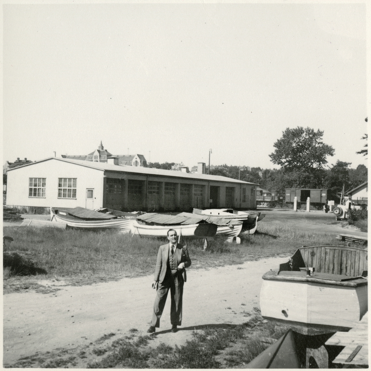 Bussgarage och båtar vid Kattvikskajen.