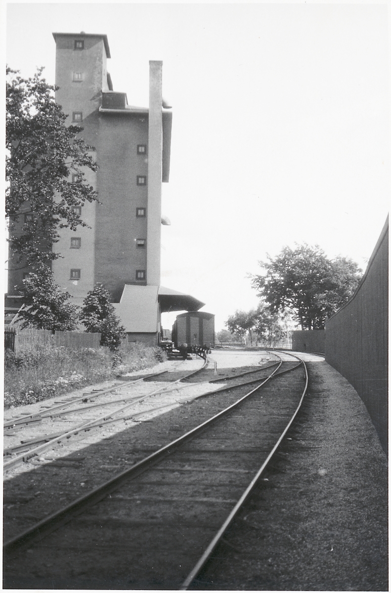 Byggnaden i bild är ett lagerhus, ett spannmålsmagasin under krigsåren, i utkanten av bangården i Eslöv.