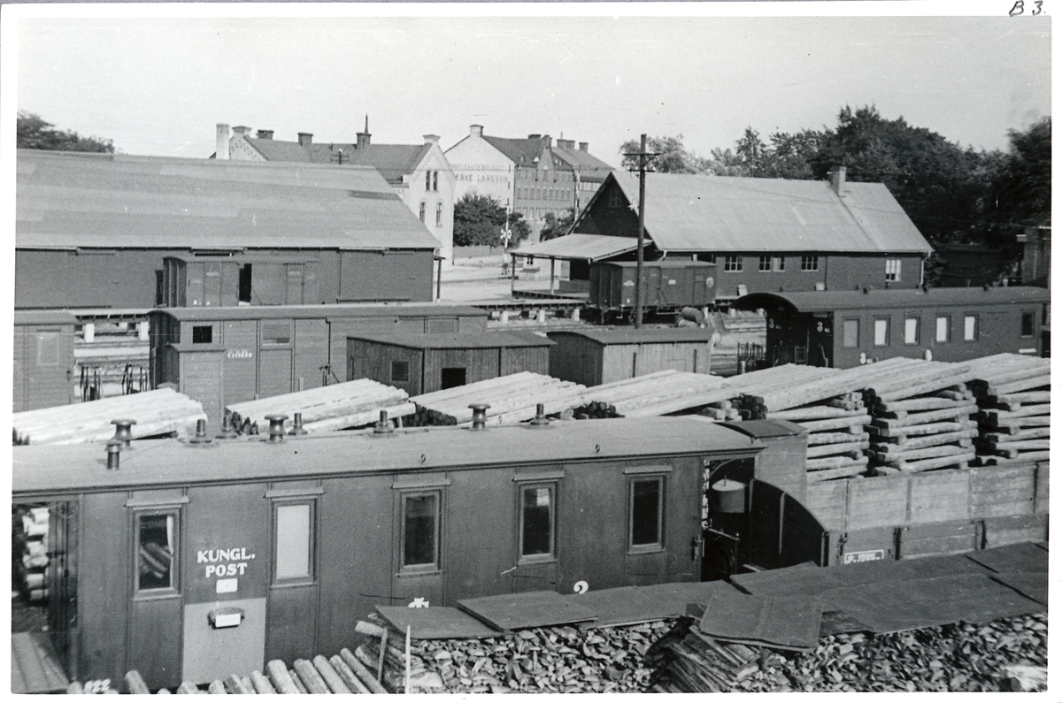 "Köping Hults Järnvägs" bangård vid Örebro Central. Statens Järnvägar, SJ godsvagn post 822 (kombinerad post och andra klass vagn).