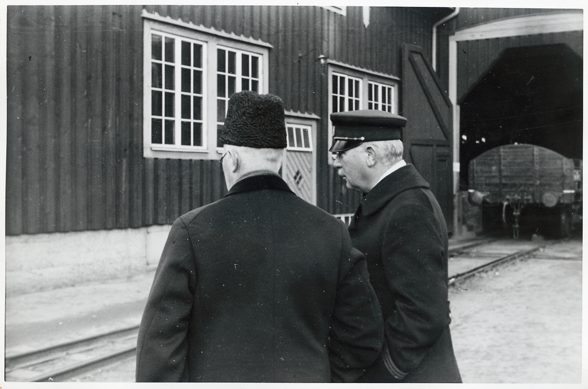 Järnvägstjänsteman på inspektion, här vid godsmagasinet i Hässleholm.