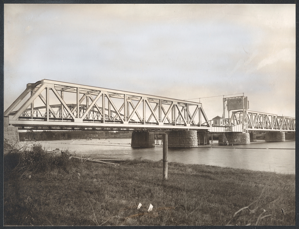 Dalälven vid Mora, den nya och gamla bron sida vid sida.