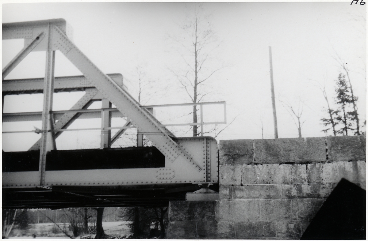 Troligen järnvägsbro över Dyltaån vid Ervalla. Brofäste.