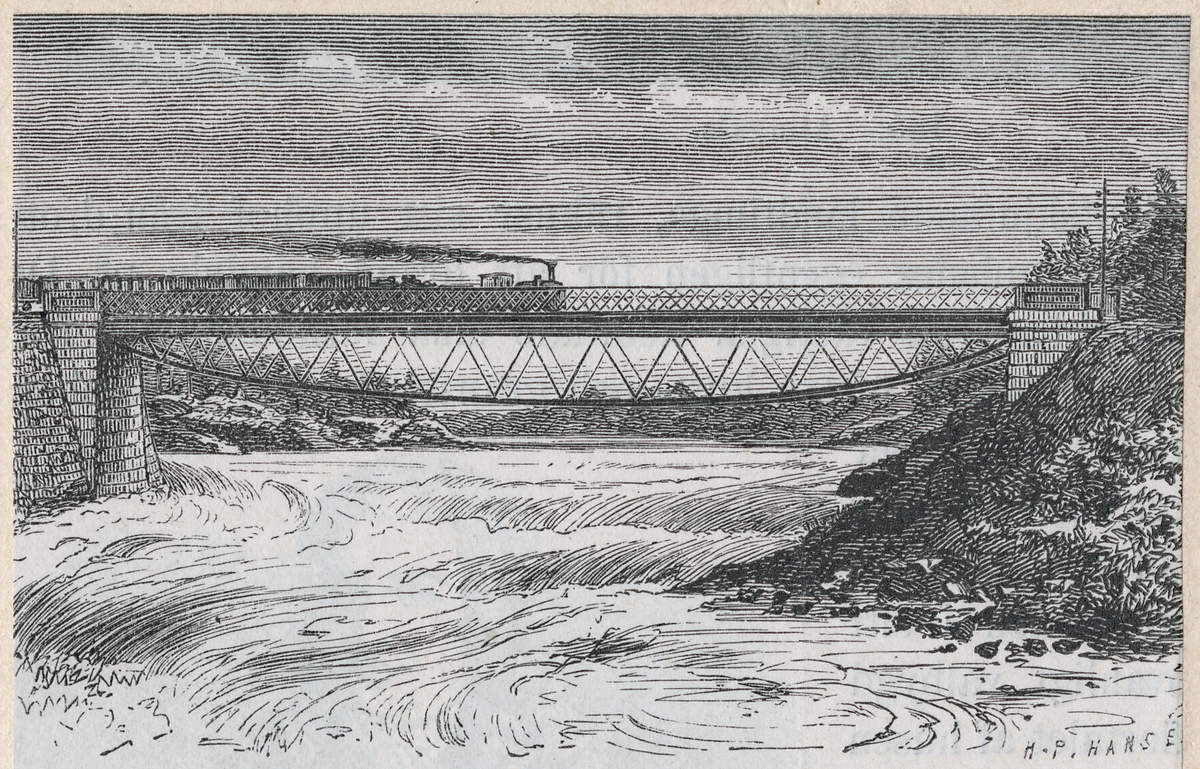 Järnvägsbron över Huvudnäsfallet på linjen mellan Vänersborg och Vargön.