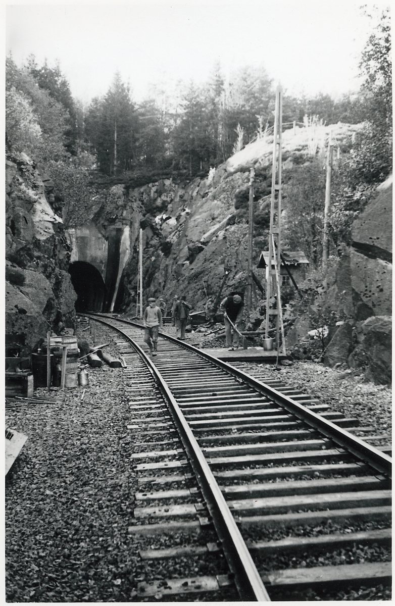 Bohusbanan inför elektrifieringen, banarbete vid Skeppsvikstunneln på linjen mellan Ljungskile och Uddevalla.