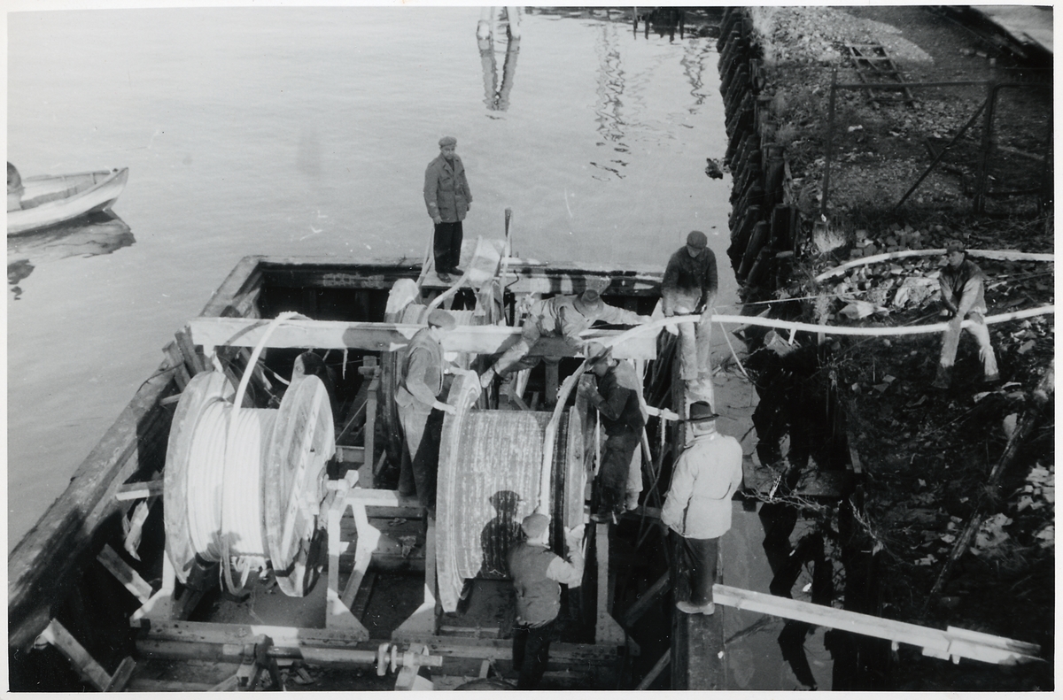 Titel: Kabelläggning från båt vid Marieholmsbron.