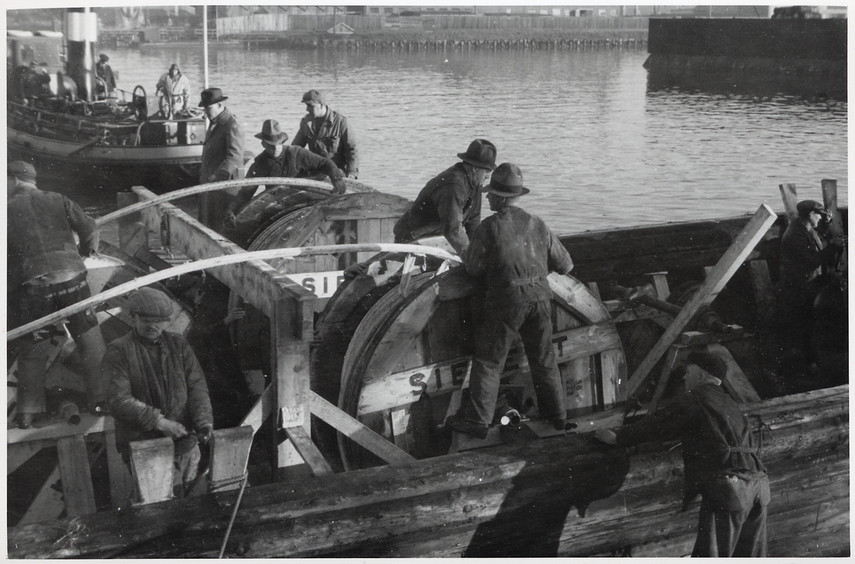 Titel: Kabelläggning från båt vid Marieholmsbron.