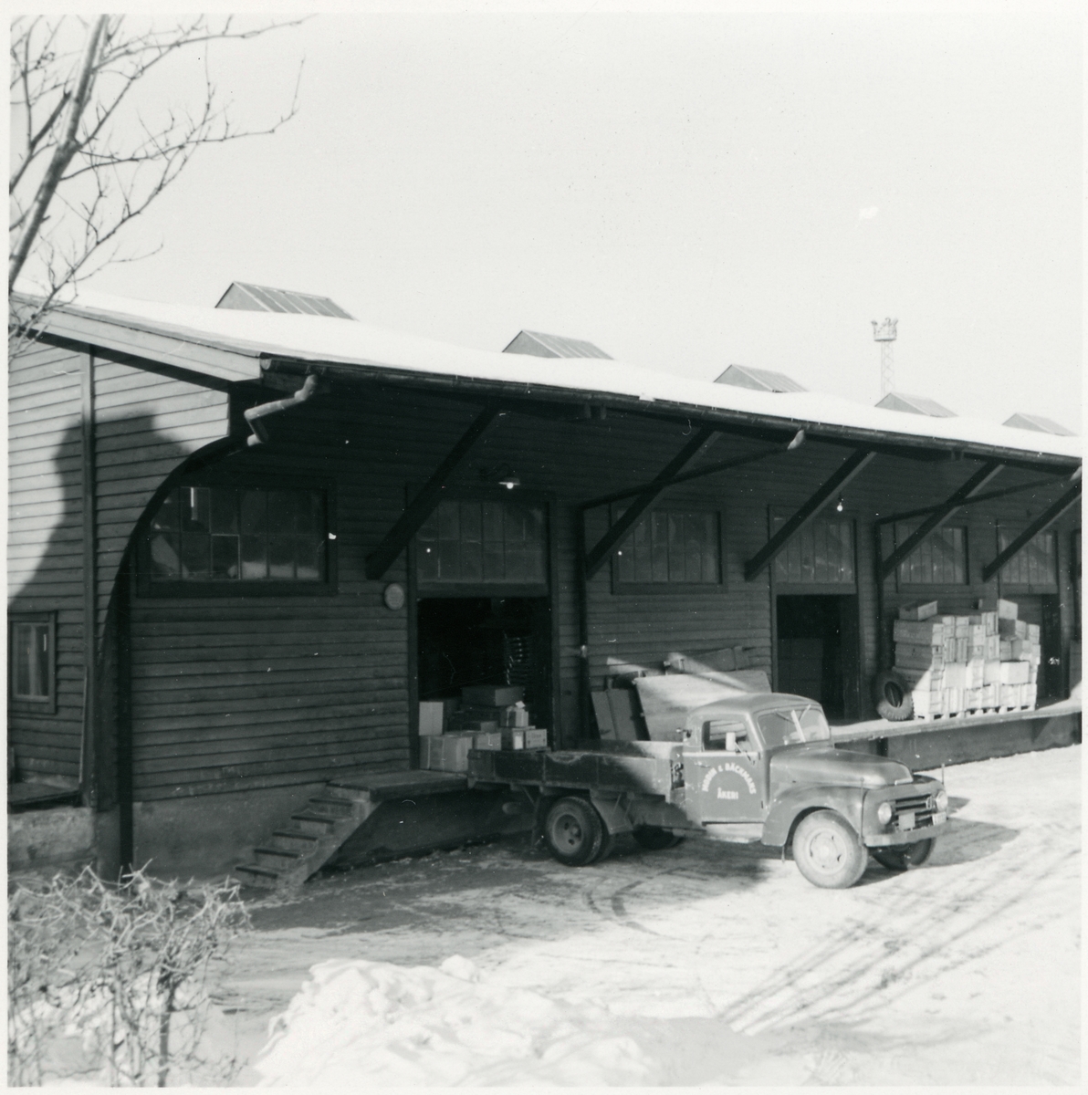 Lastbil från "Modins & Bäckmans åkeri" vid lastkajen.