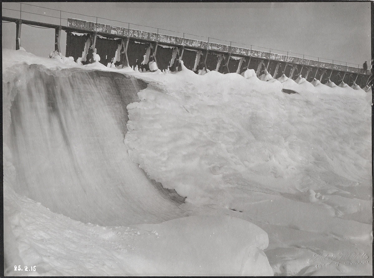 Porjus kraftverk i Stora Luleälv. Svallbildningar på stora skibordet.