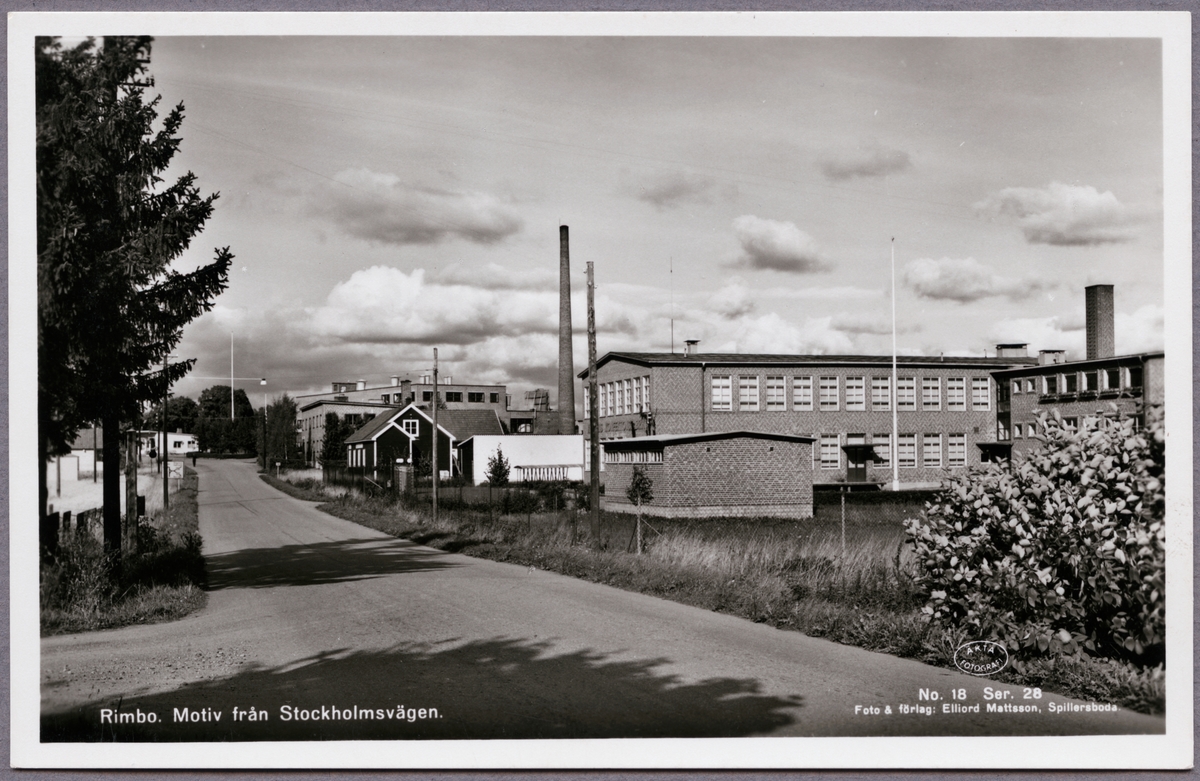 Stockholmsvägen i Rimbo med Mejeriet centralt i bild till höger om vägen.