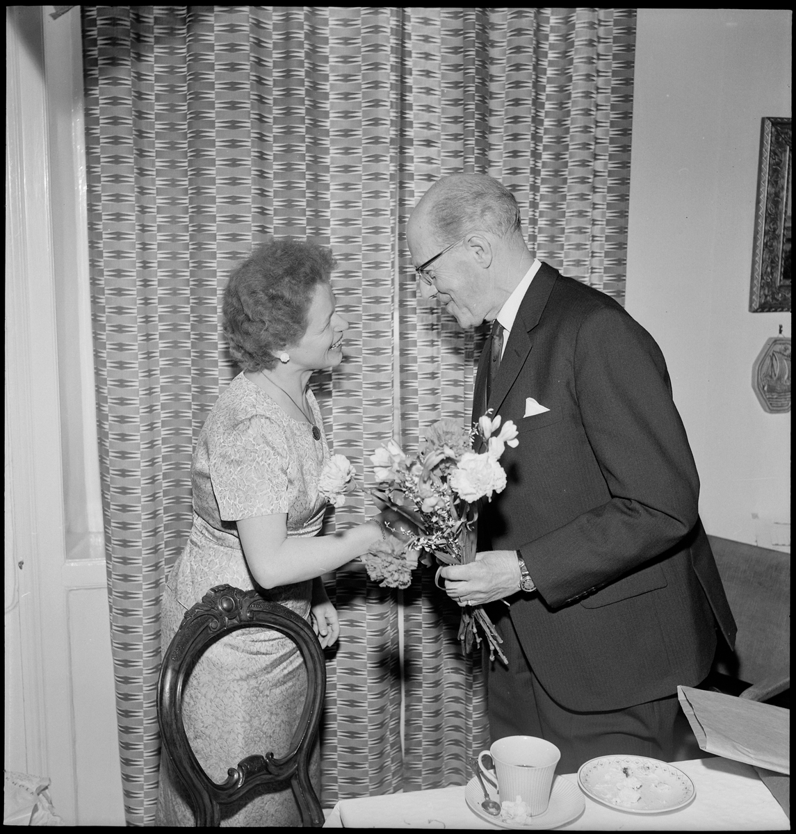 Titel: Bernhard Hjelm vid järnvägsmuseet avtackas.