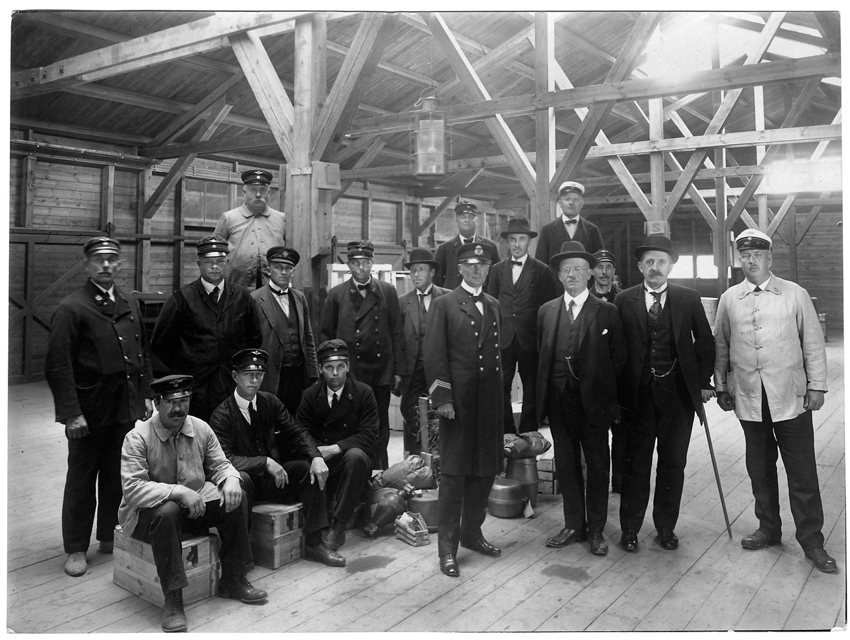 Stationspersonal med stationsinspektoren Frithiof Daun i Kristinehamn.