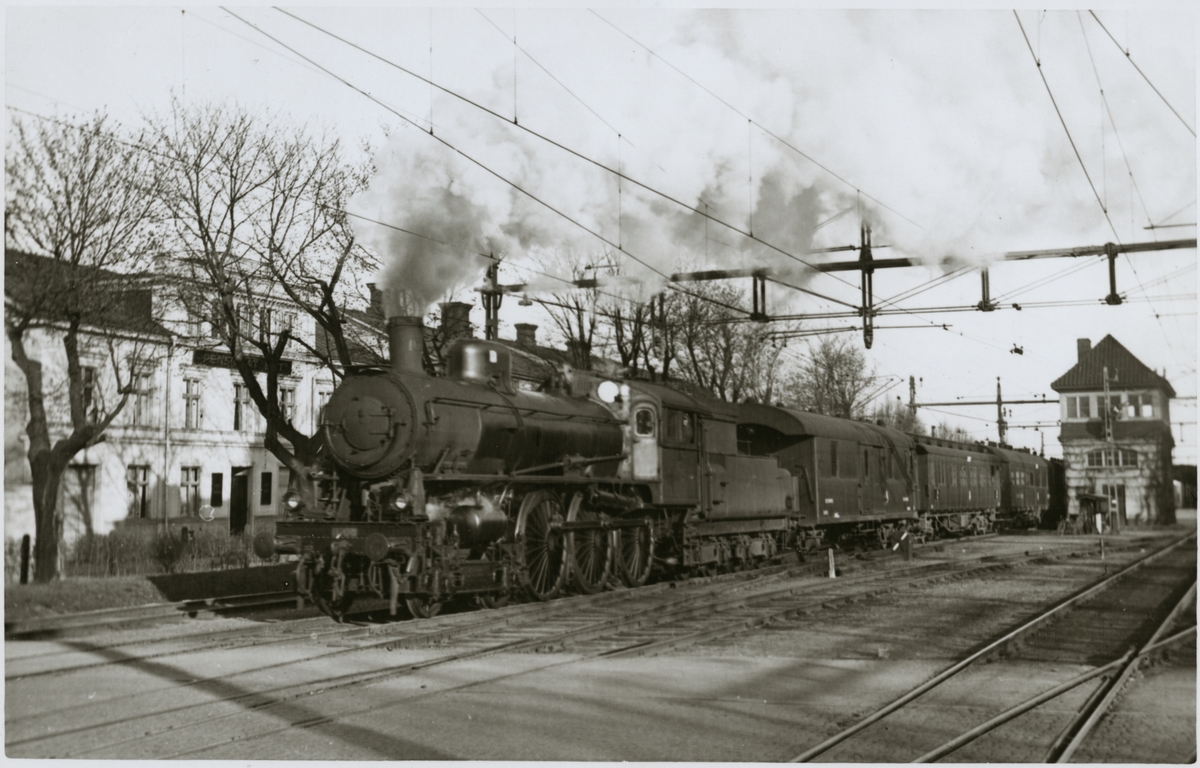Statens Järnvägar, SJ A2 ånglok på bangård vid växel och ställverk.