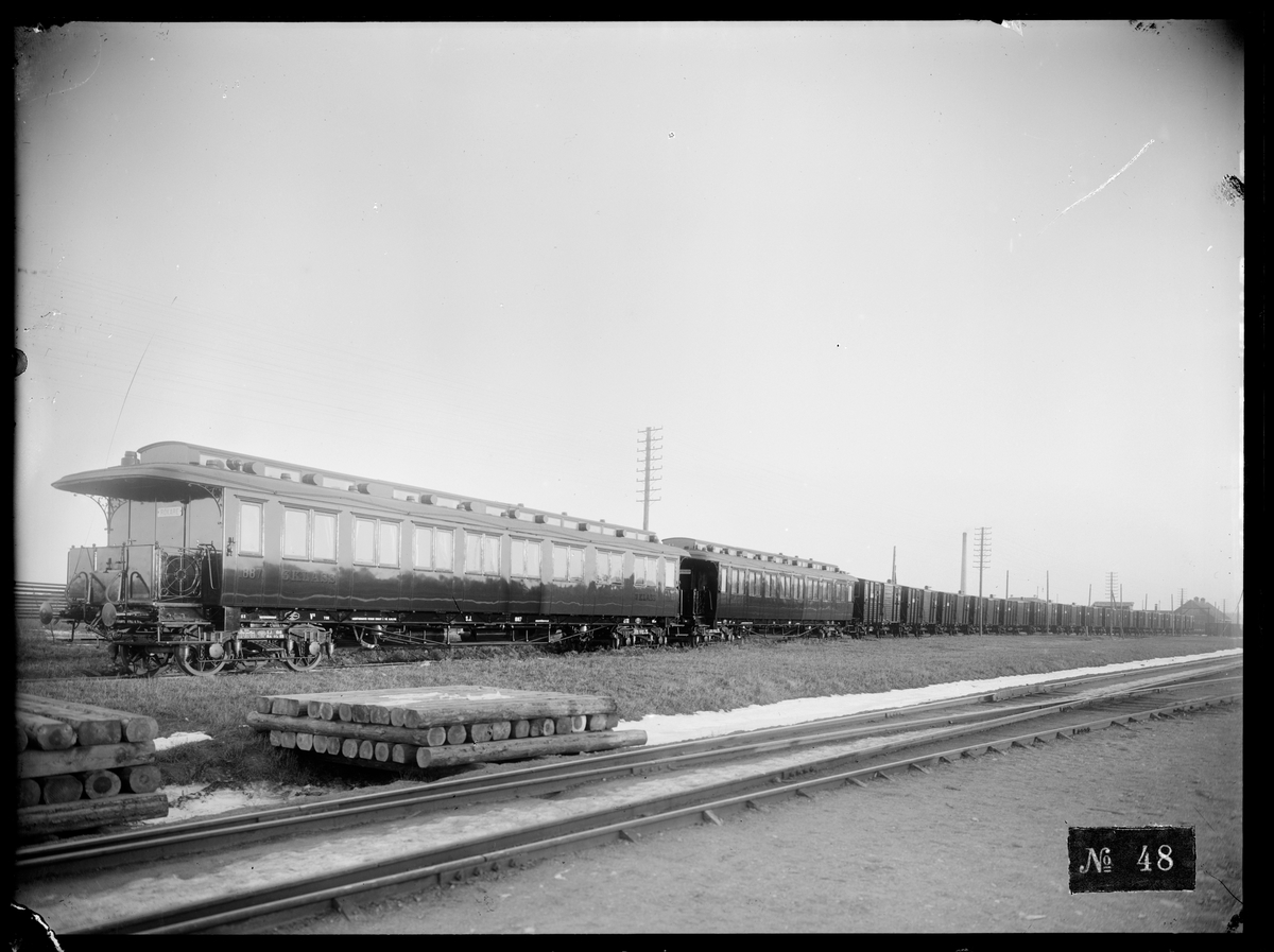 Statens Järnvägar, SJ BCo3 1887, SJ Bco3 1888 samt SJ G3 vagnar. Bilden tagen vid AB Arlöfs Mekaniska Verkstad & Waggonfabrik.