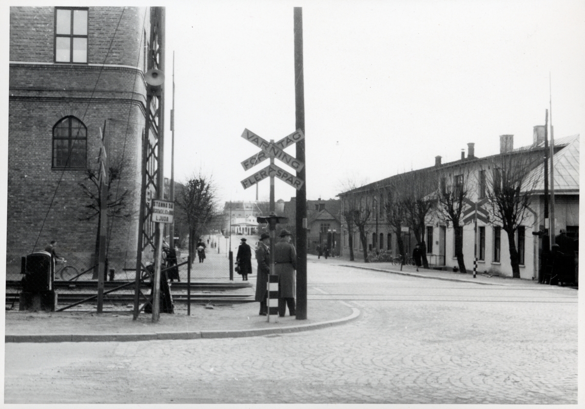 Titel: Järnvägsövergång vid stationsgatan i Sundbyberg, på sträckan mellan Sundbyberg och Huvudsta C.
