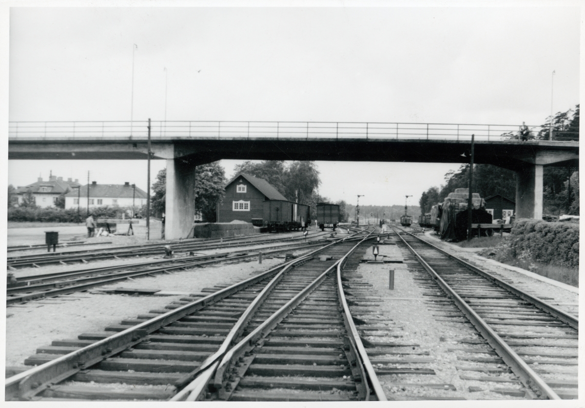 Vägbro över bangården vid Spånga station.