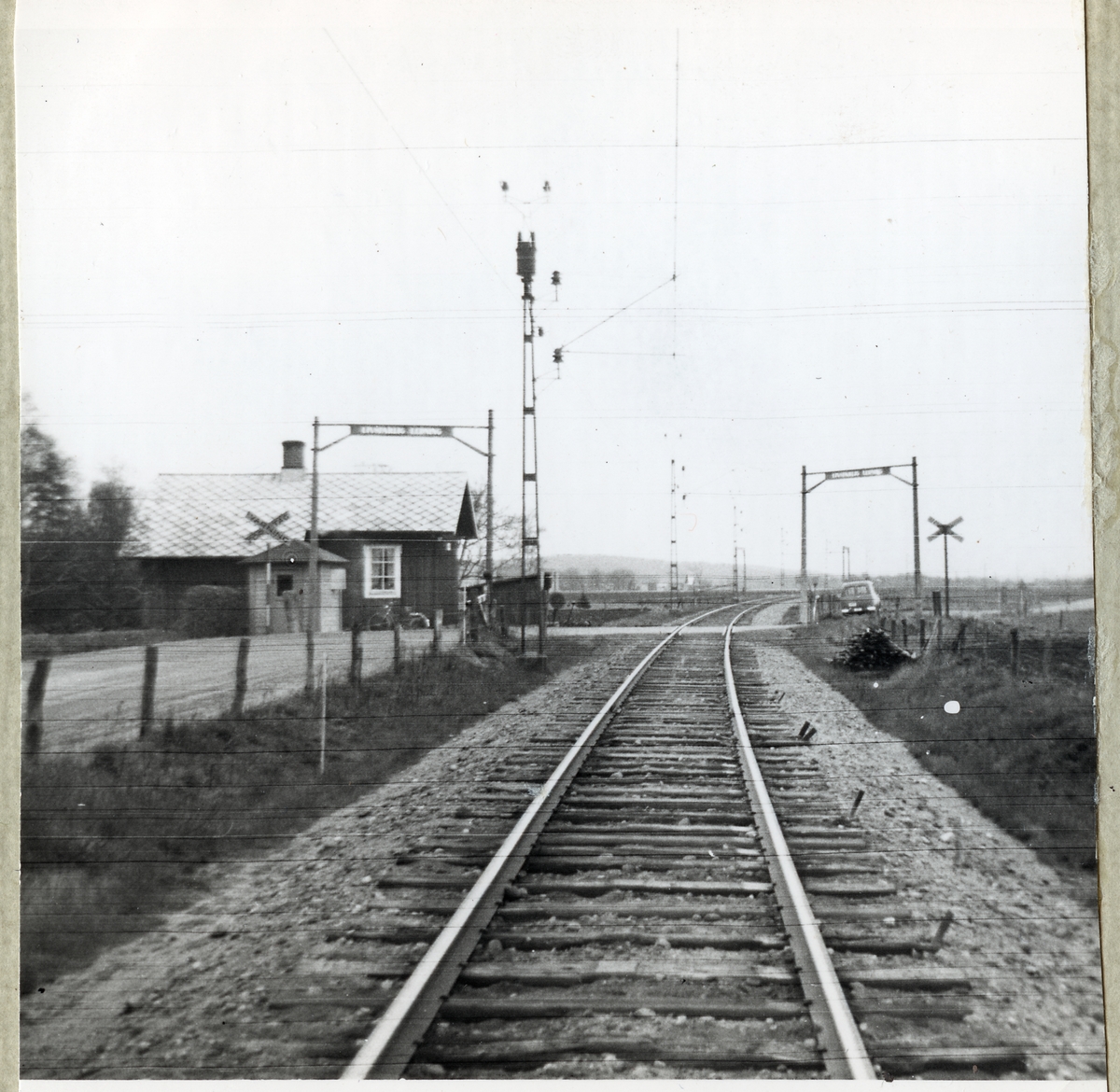 Järnvägsövergång vid Skogabyvägen på linjen mellan Veinge och Knäred.