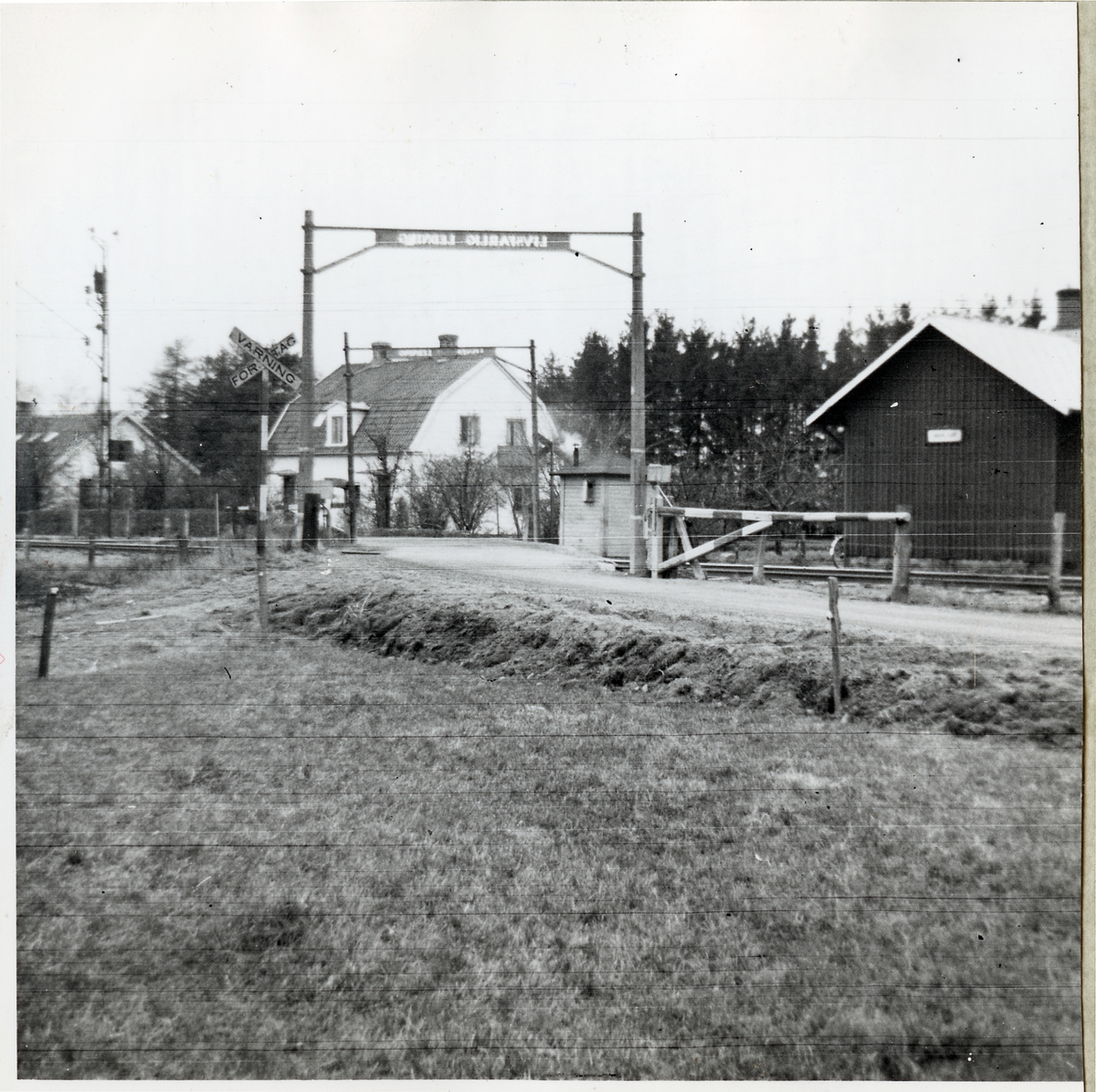 Järnvägsövergång vid Skogabyvägen på linjen mellan Veinge och Knäred.