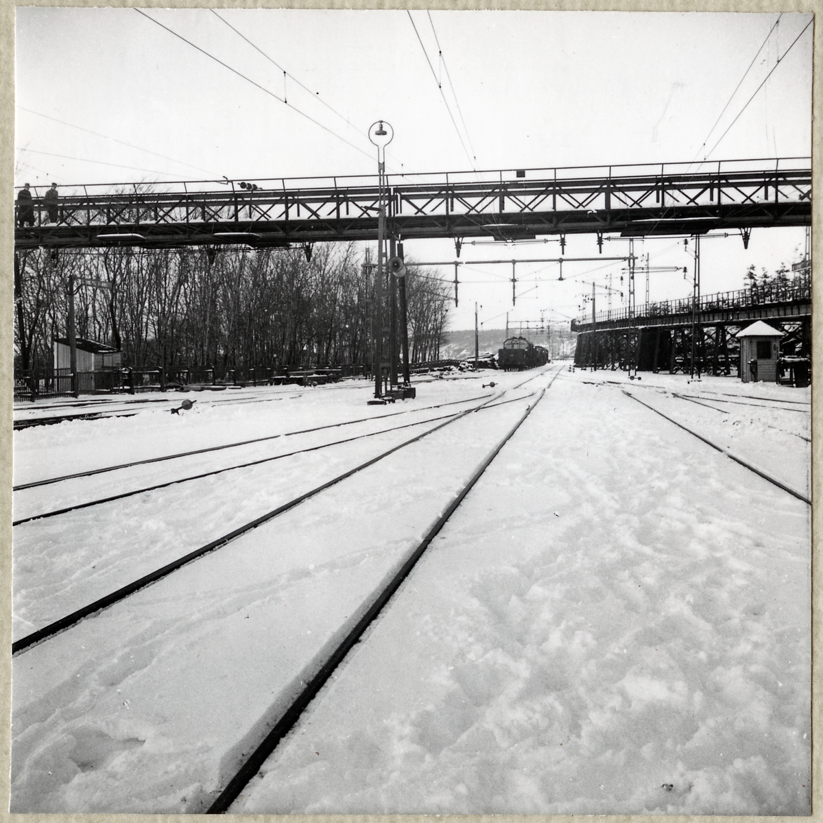 Titel: Järnvägsövergång vid Helsingborgs färjestations bangård.