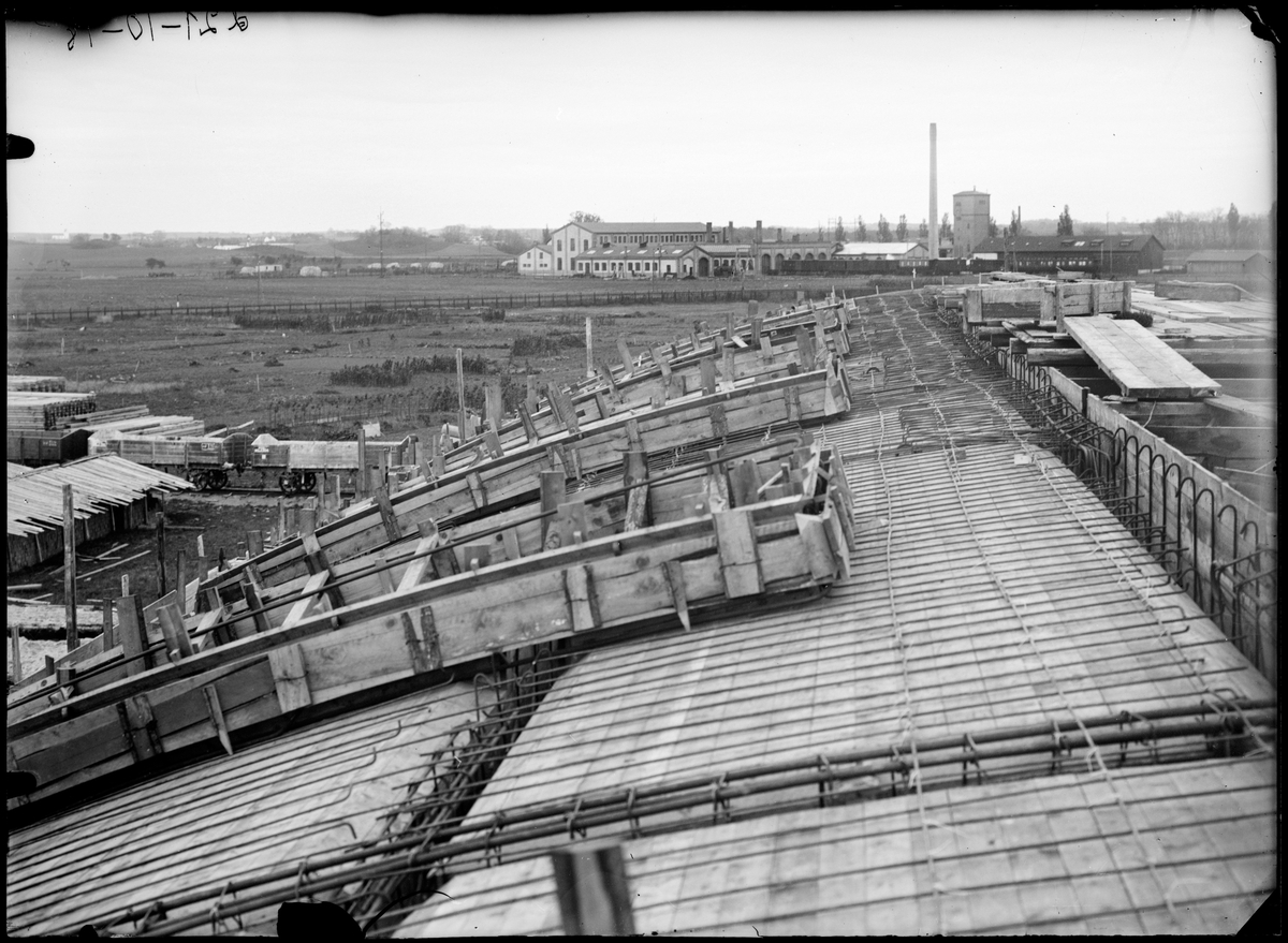 Byggnation av vagnverkstaden vid Statens Järnvägars Järnvägsverkstäder i Kirseberg, Malmö.