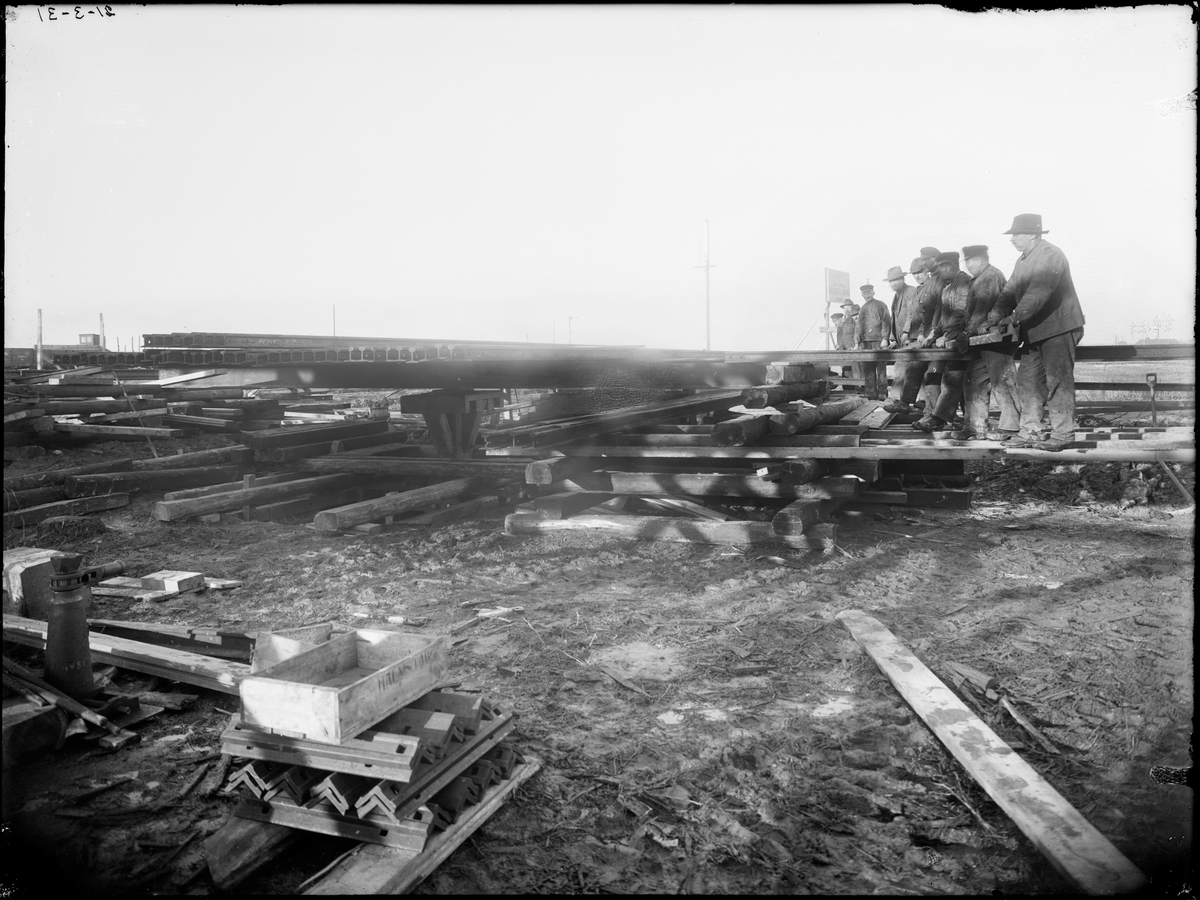 Byggnation av Sjölundaviadukten över Malmö centralstations bangård.