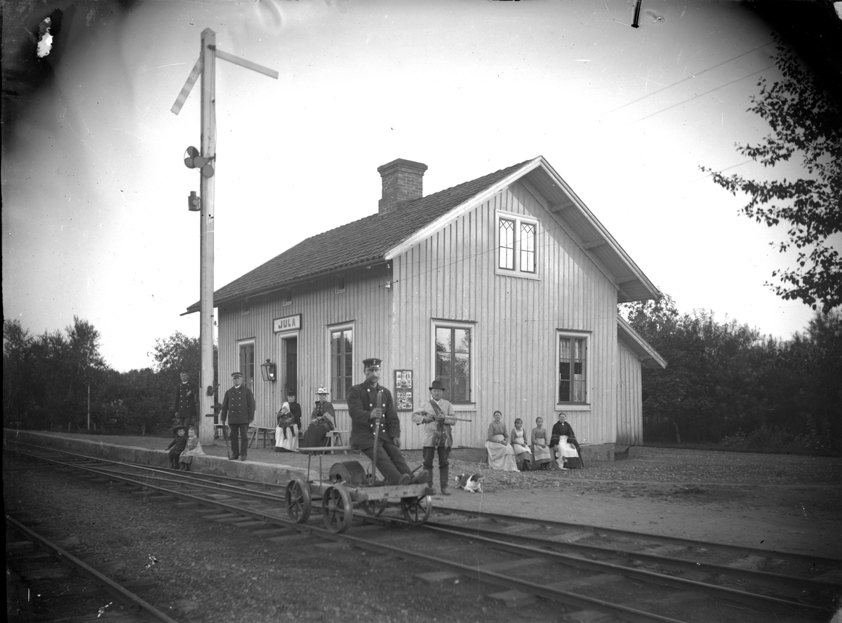 Station öppnad 1874. 1932 nedklassad till håll- och lastplats under Mariestad. Envånings stationshus i trä. Tillbyggnad av bagagerummet 1944.