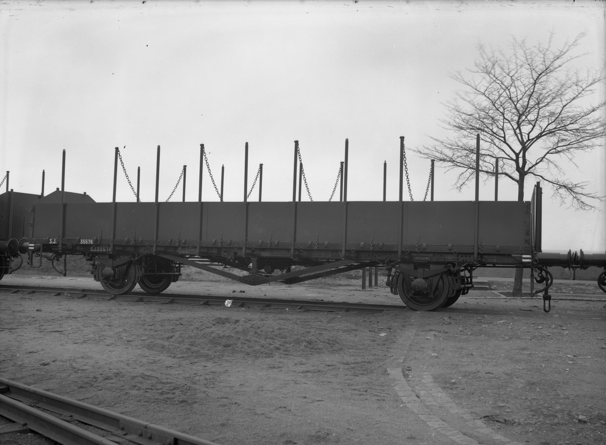 Statens Järnvägar, SJ O 35576. Stolpvagn med lämmar. Kockums Mekaniska Verkstads AB