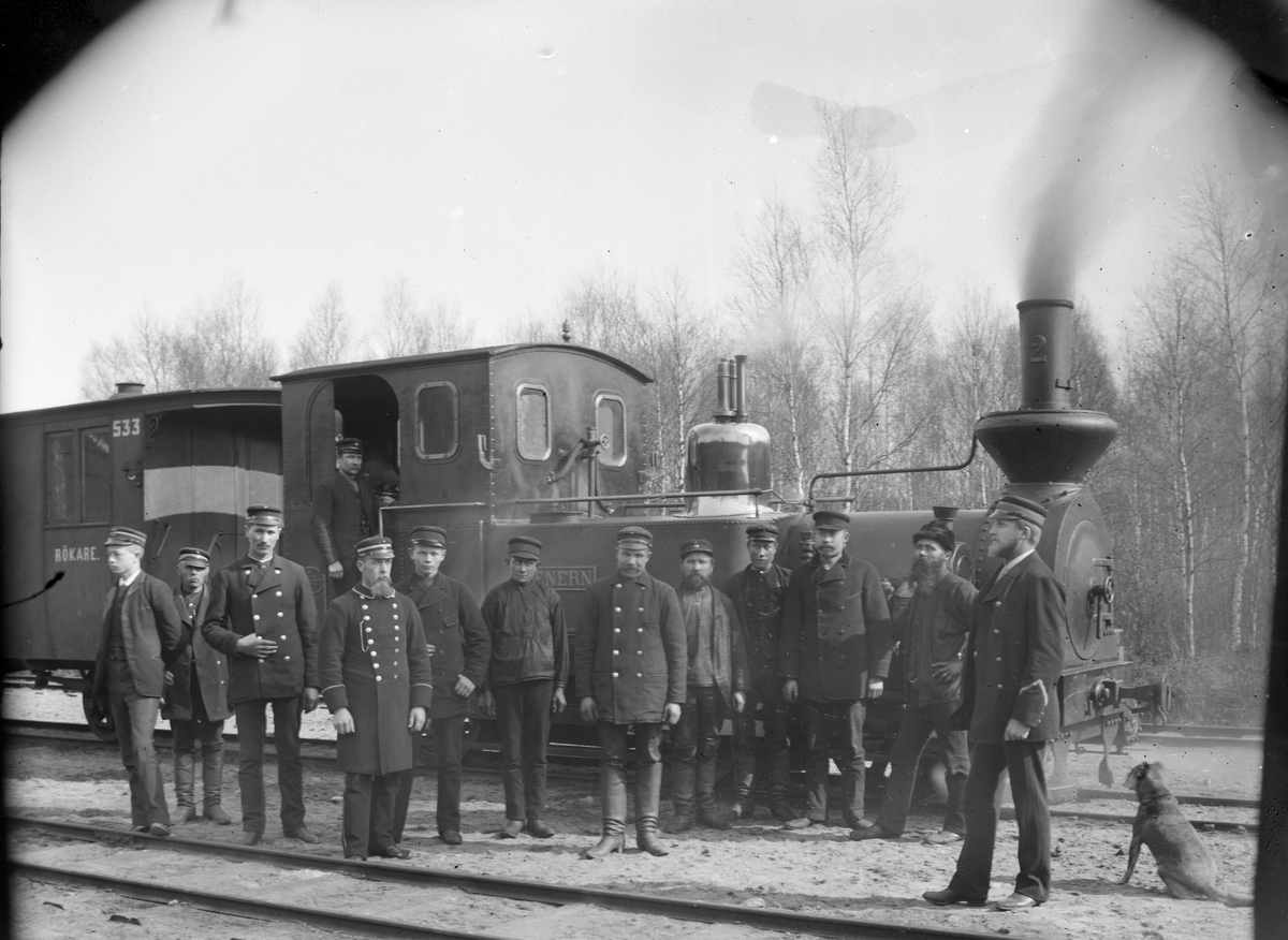 Personal vid Skara - Kinnekulle - Vänern Järnväg framför ångloket SKWJ lok 2 "Wenern".