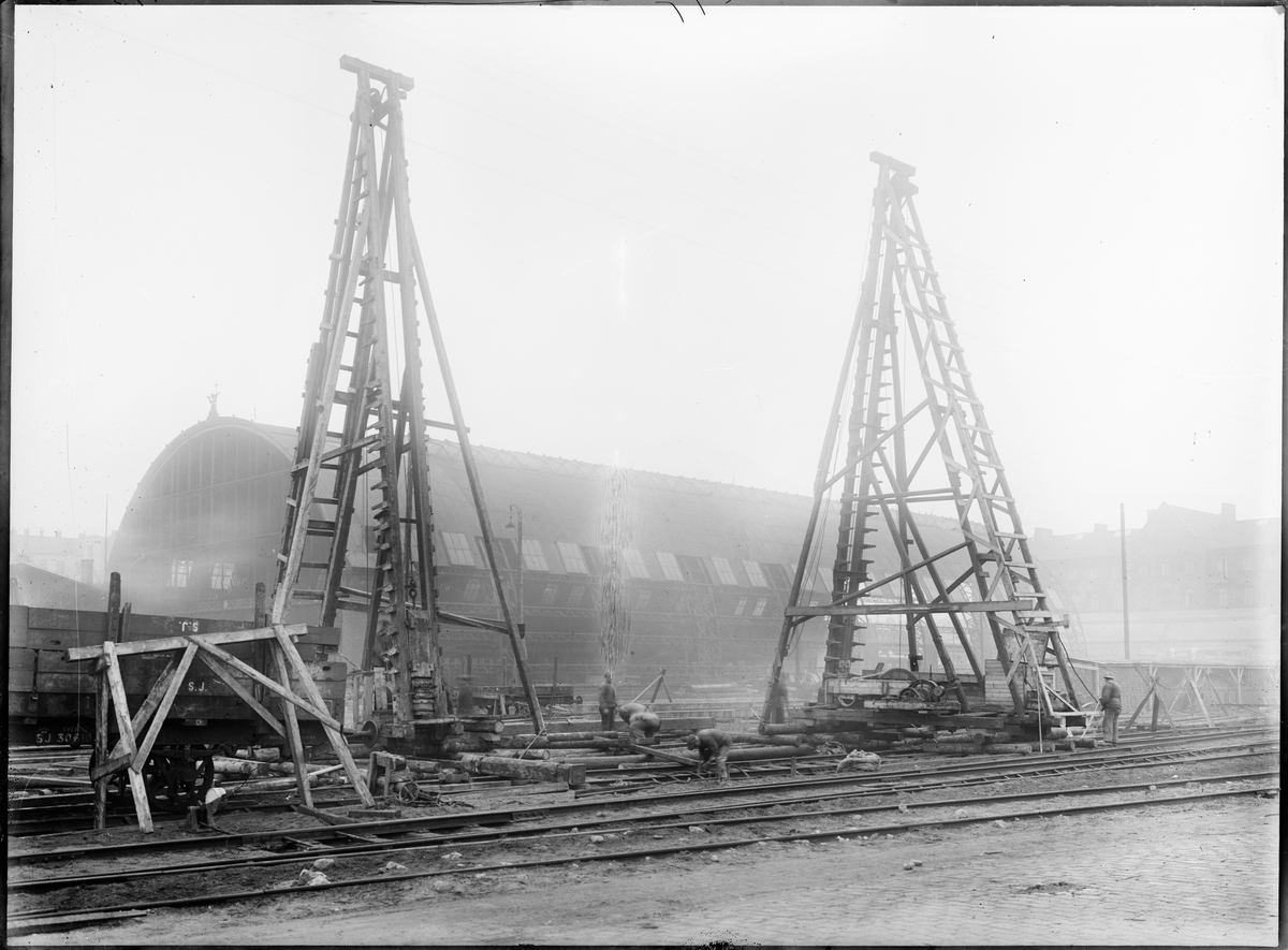 Byggnation av banhall vid Malmö centralstation, 1923.
