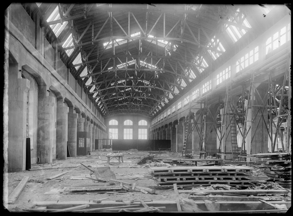 Byggnation av lokverkstaden vid Statens Järnvägars Järnvägsverkstäder i Kirseberg, Malmö.