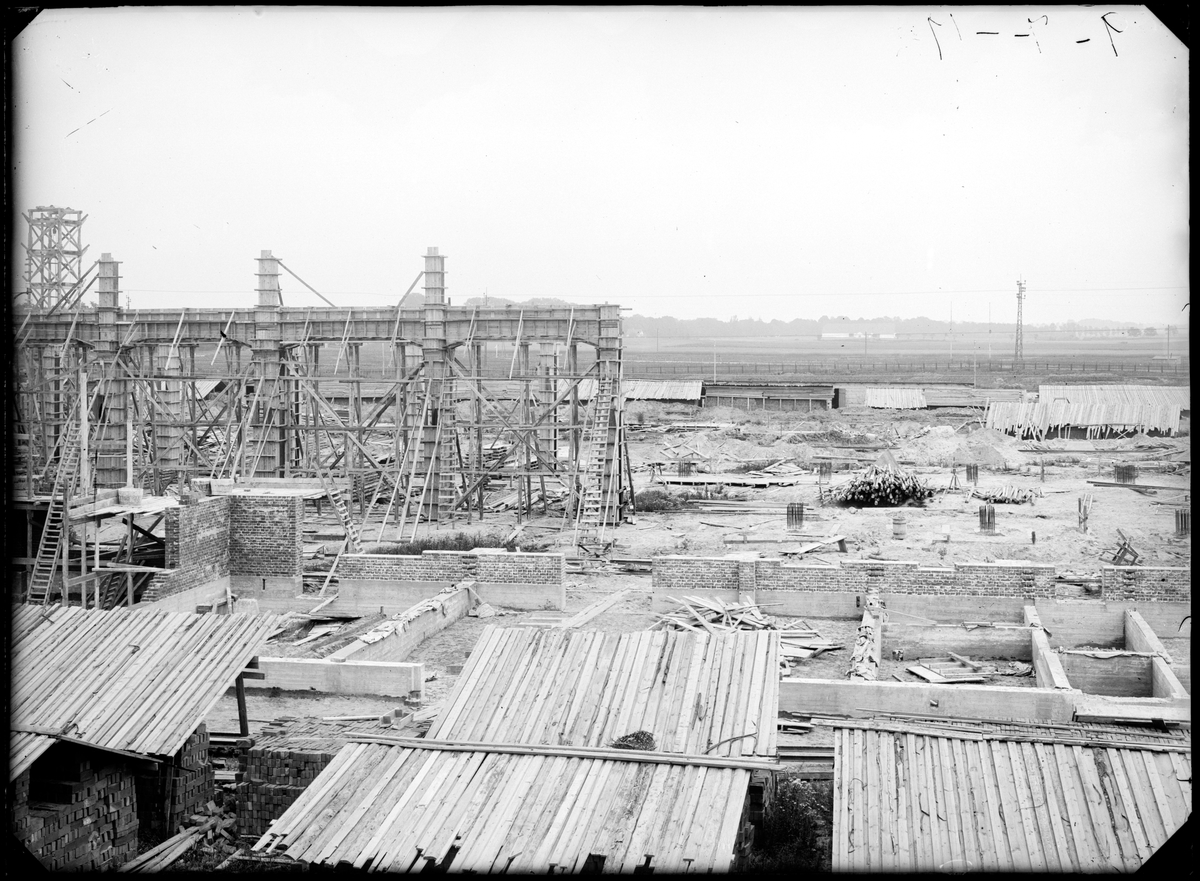 Byggnation av lokverkstaden vid Statens Järnvägars Järnvägsverkstäder i Kirseberg, Malmö.