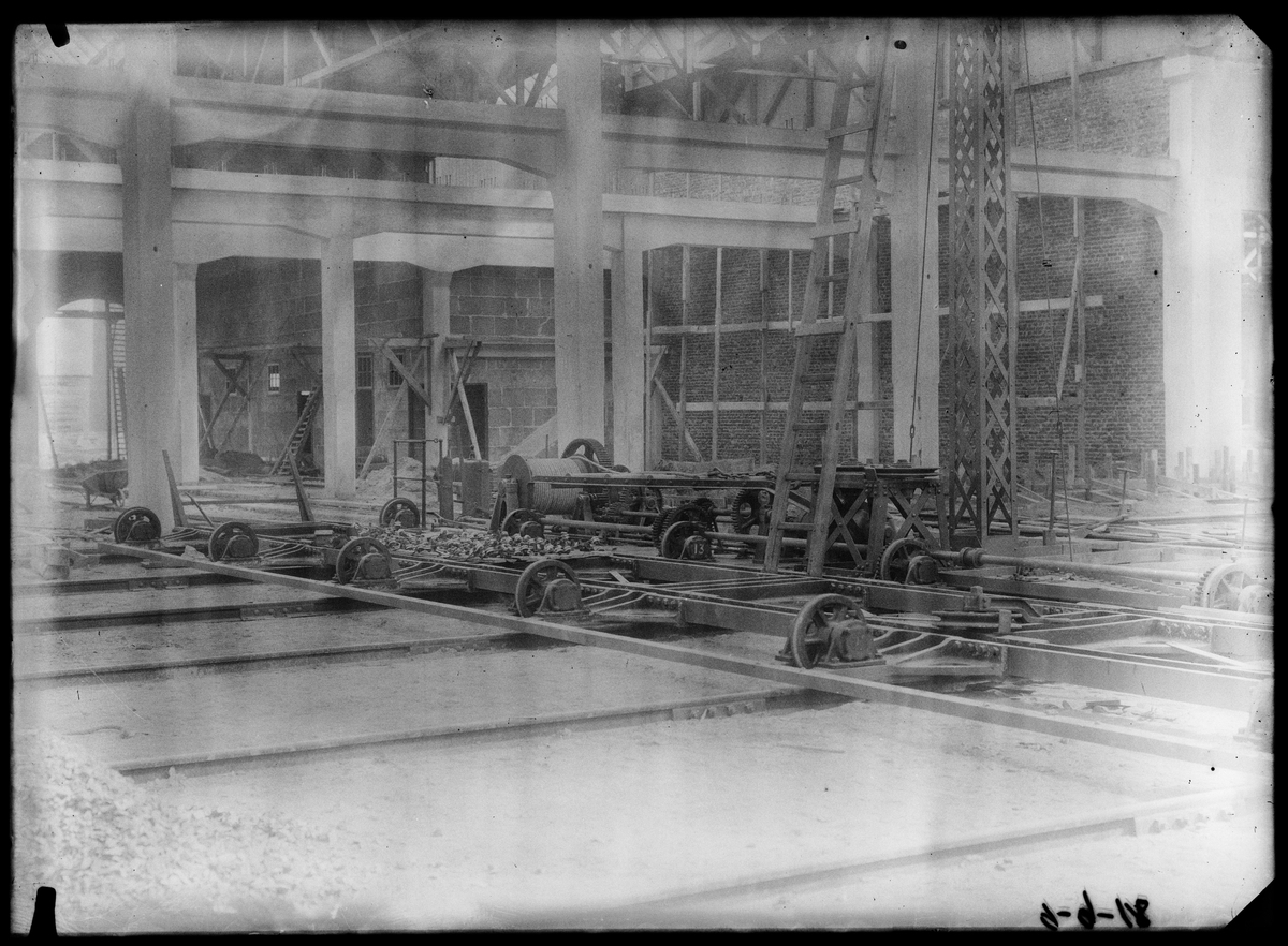 Byggnation av lokverkstaden vid Statens Järnvägars Järnvägsverkstäder i Kirseberg, Malmö.