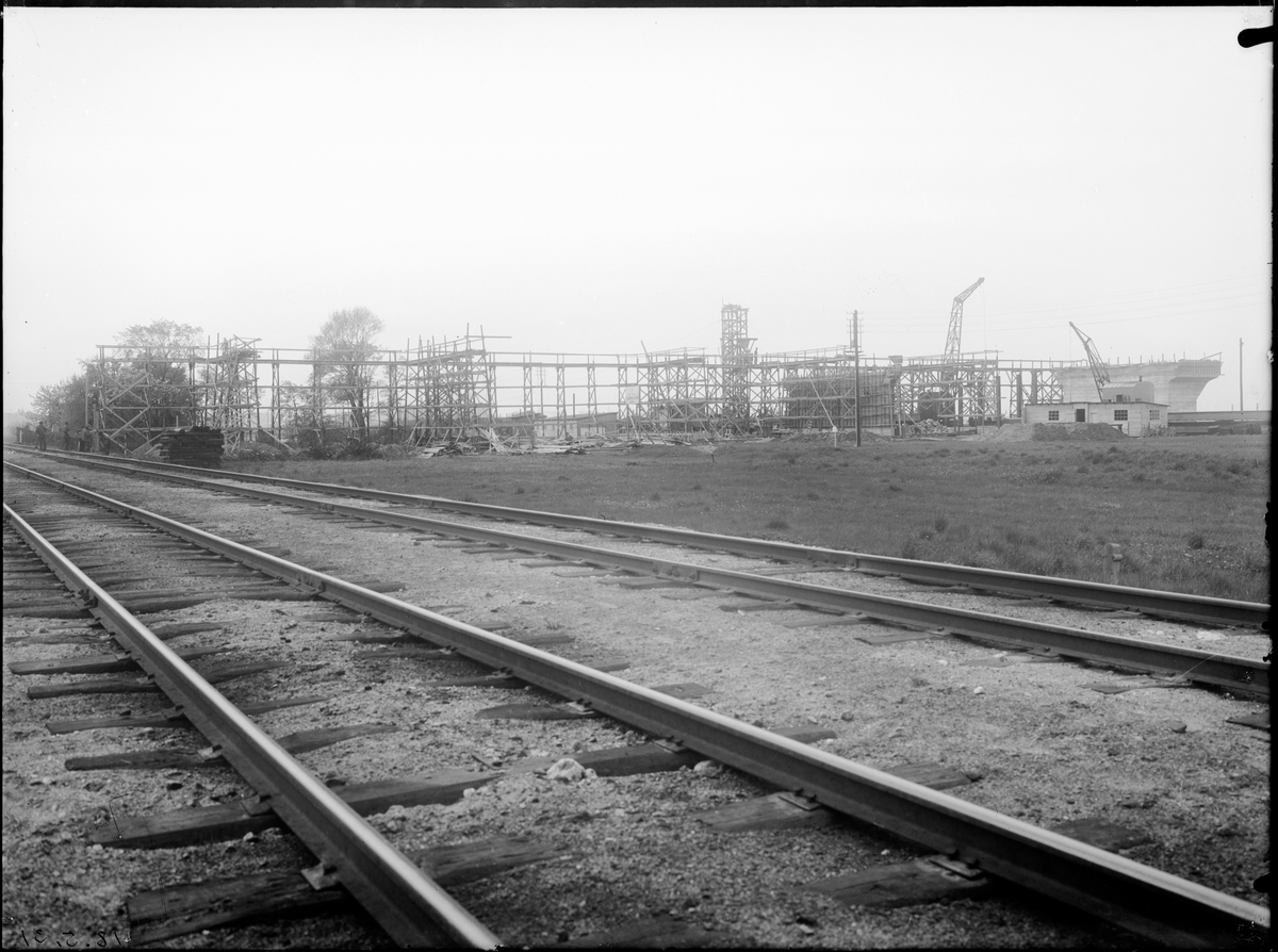 Byggnation av Sjölundaviadukten över Malmö centralstations bangård.