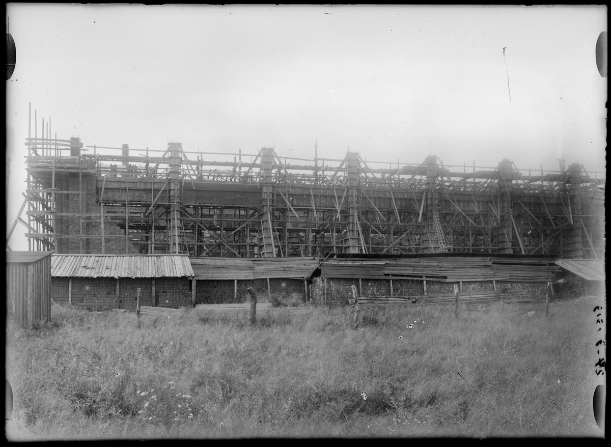 Byggnation av lokverkstaden vid Statens Järnvägars Järnvägsverkstäder i Kirseberg, Malmö.