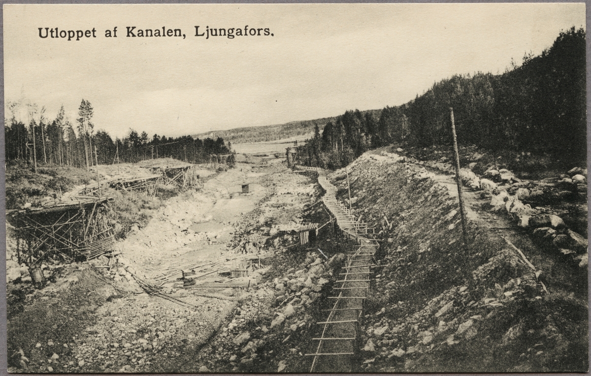 Utgrävning av utloppskanalen till Ljunga kraftverk i Ljungaverk som vid anläggandet 1912 hette Ljungafors.
