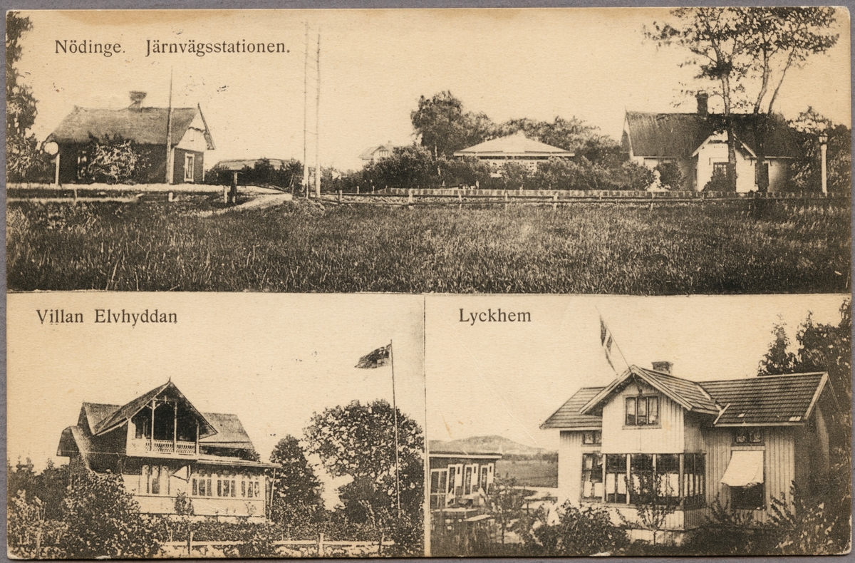 Nödinge järnvägsstation även Villa Elvhyddan och Lyckhem, tre olika motiv.