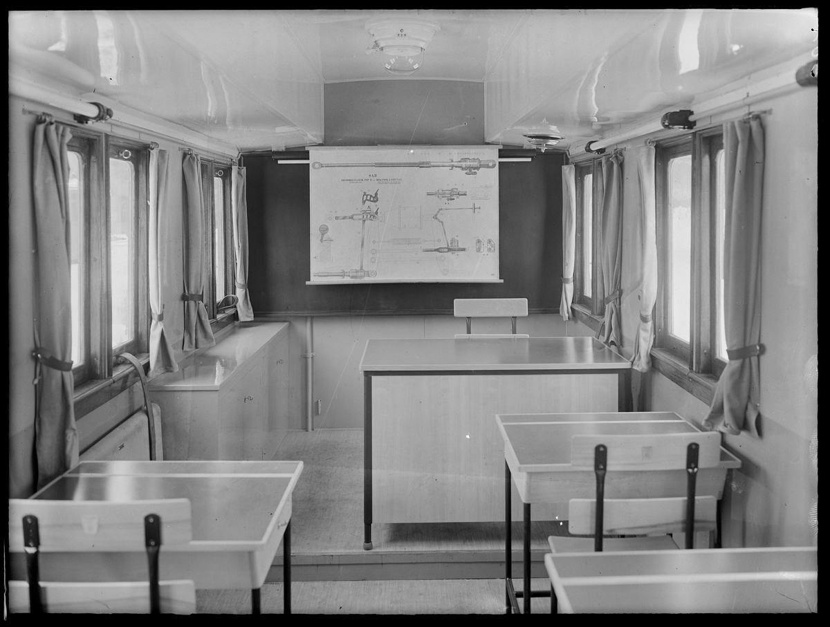 Stockholm - Roslagens Järnvägar, interiör av undervisningsvagn SRJ Bop 30.