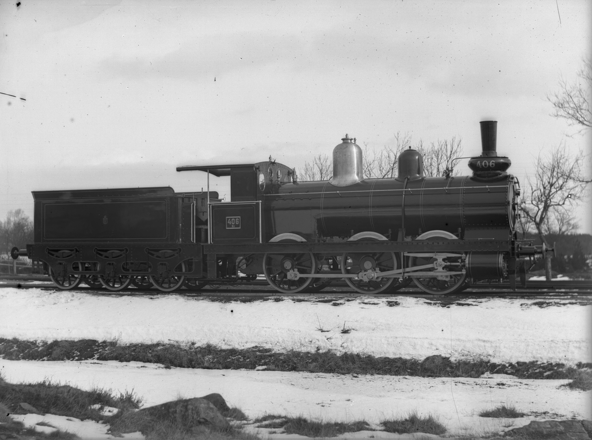 Statens Järnvägar, SJ Kd2 406. Leveransfoto. Loket tillverkades av Nohab och hade högsta hastighet 60 km i timme. Det var vid leveransen försedd med tender littera C, som snart utbyttes mot DK-tendr. Loket blev skrotad 1925 i Göteborg.