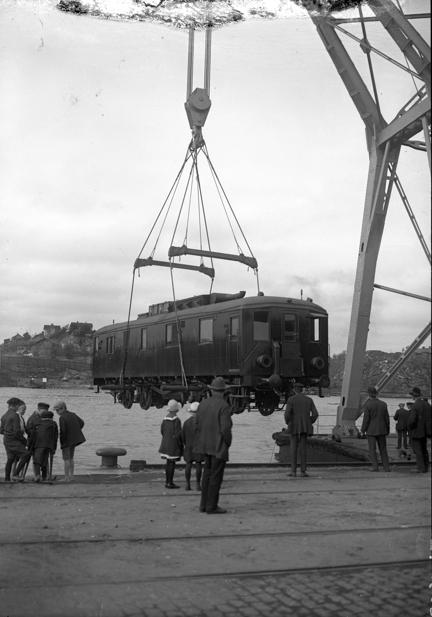 Leverans av Göteborg-Särö Järnvägs (GSJ) motorvagn vid Göteborg hamn.