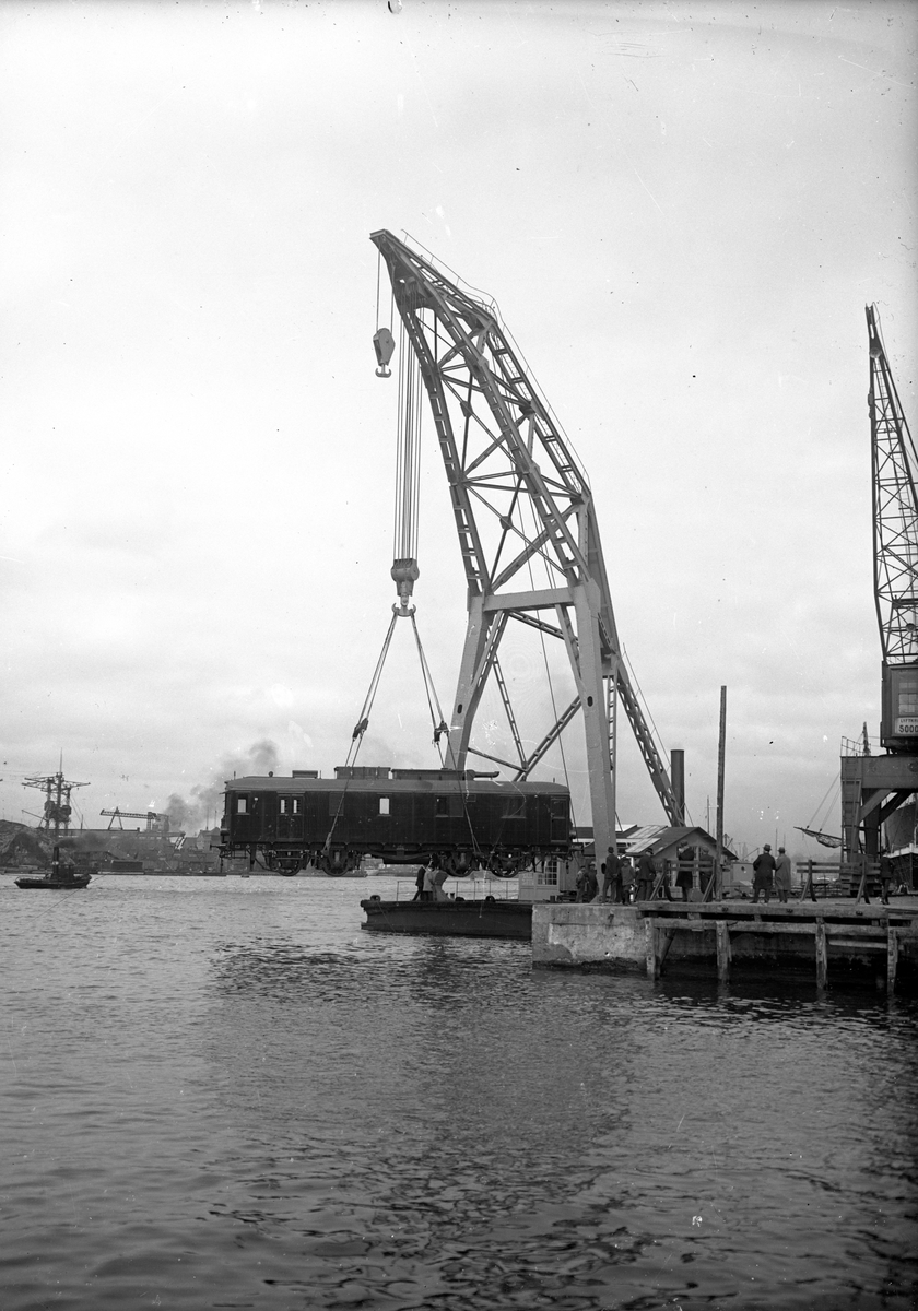 Leverans av Göteborg-Särö Järnvägs (GSJ) motorvagn vid Göteborg hamn.