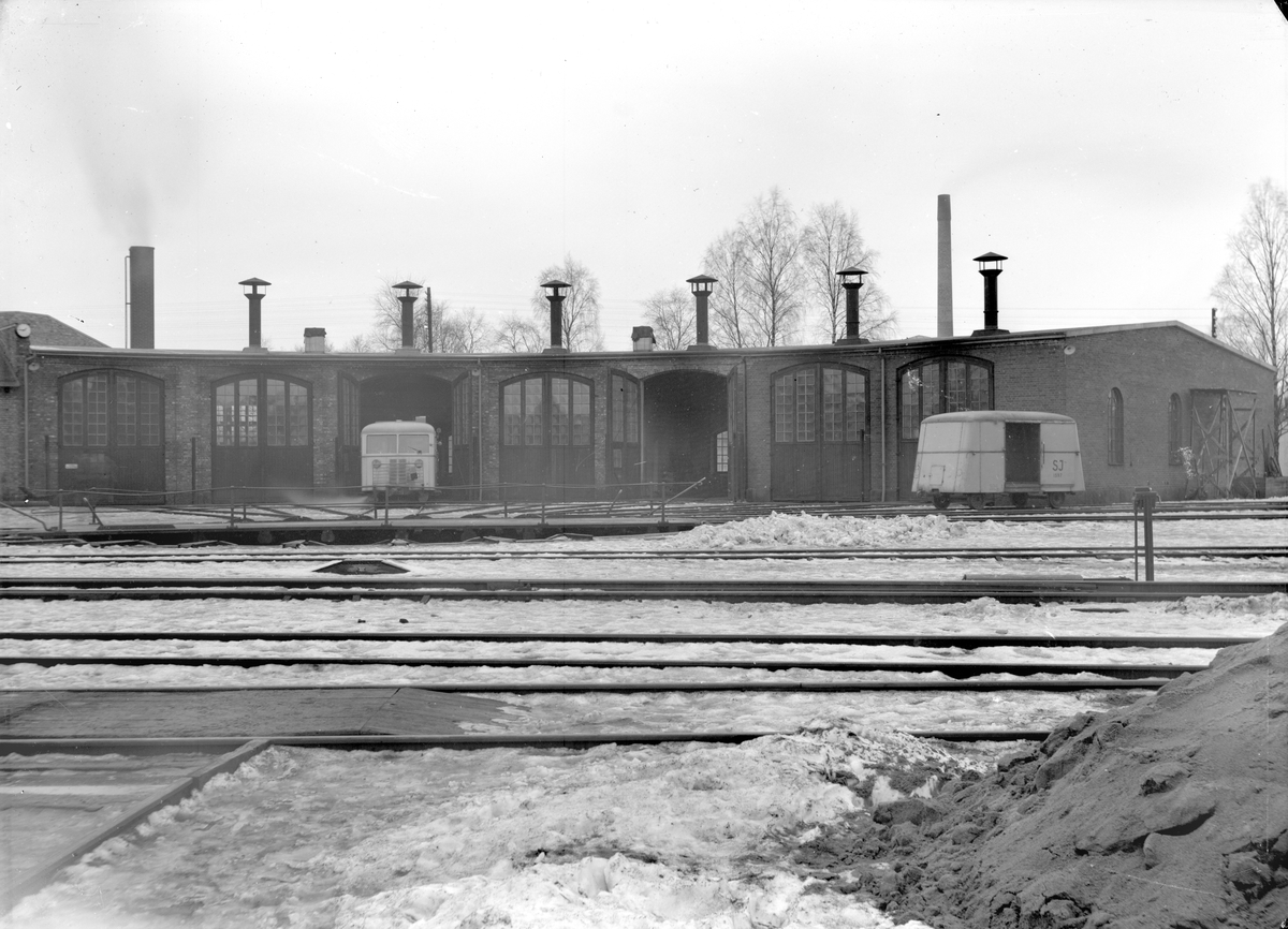 Lokstallet. Hilding Karlsson motorvagn s.k. rälsbuss och släp.