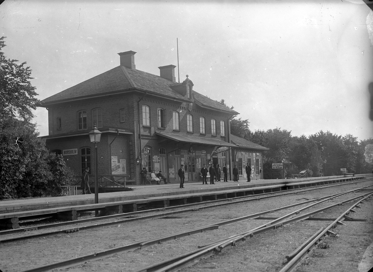 Tvåvånings stationhus i sten av Boxholmsmodellen. Kommer att byggas ut, i trä. Nytt stationshus i trä 1925, Stationen öppnades för trafik 1872. 1924 ombyggdes stationshuset fullständigt och fick sitt nuvarande utseende. 1916 skildes poststationen från järnvägen. ställverket ombyggt 1934. Personplattformen utrustades med tak 1936.