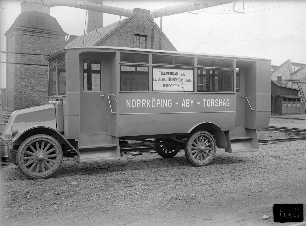 Provvagn på international chassi tillverkad för international Harvester i Norrköping. Producerad av AB Svenska Järnvägsverkstäderna. Bussen hade plats för 22 sittande passagerare. Konstruktioner var tung och inte särskilt komfortabel med sina helgjutna däck.