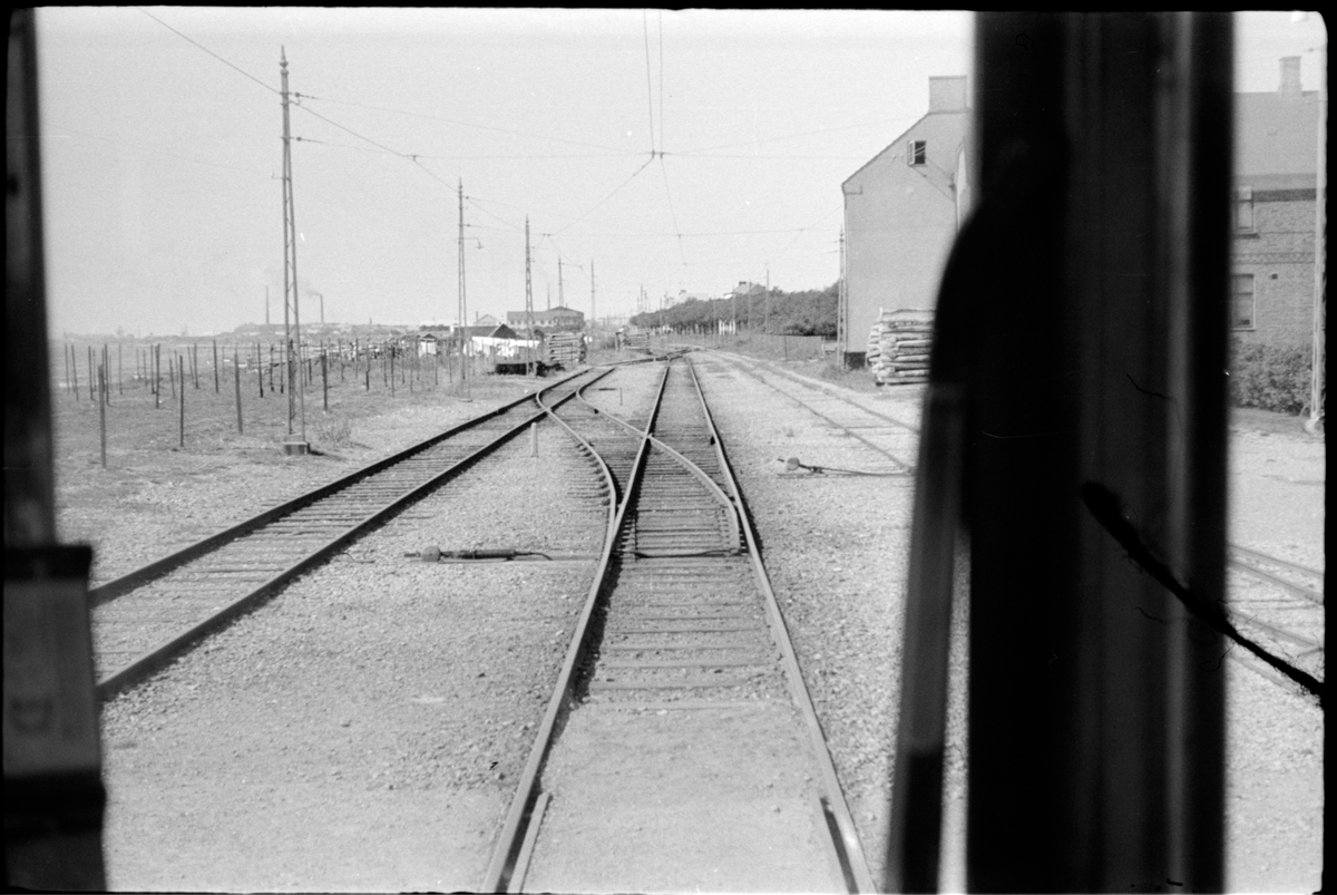 Vy över växel från förarhytten på bangården vid Råå i Helsingborg.