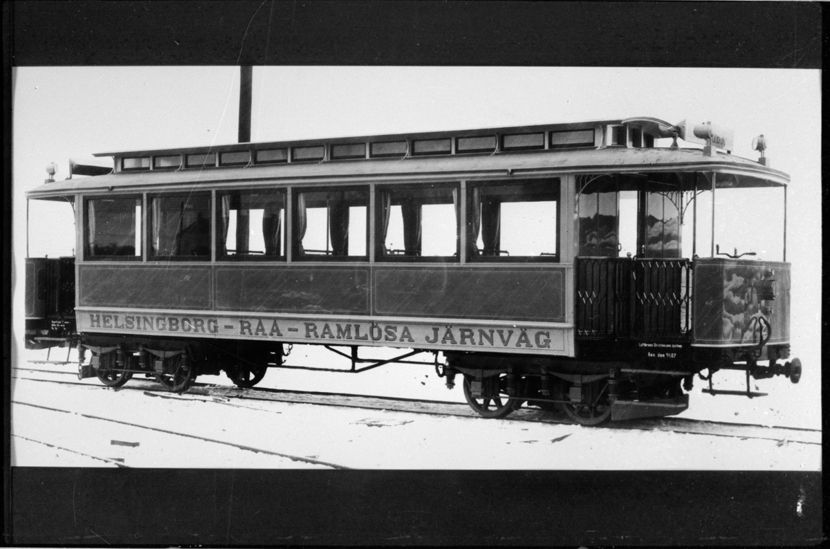 Leveransbild på Helsingborg-Råå-Ramlösa Järnväg, HRRJ täckt släpvagn.