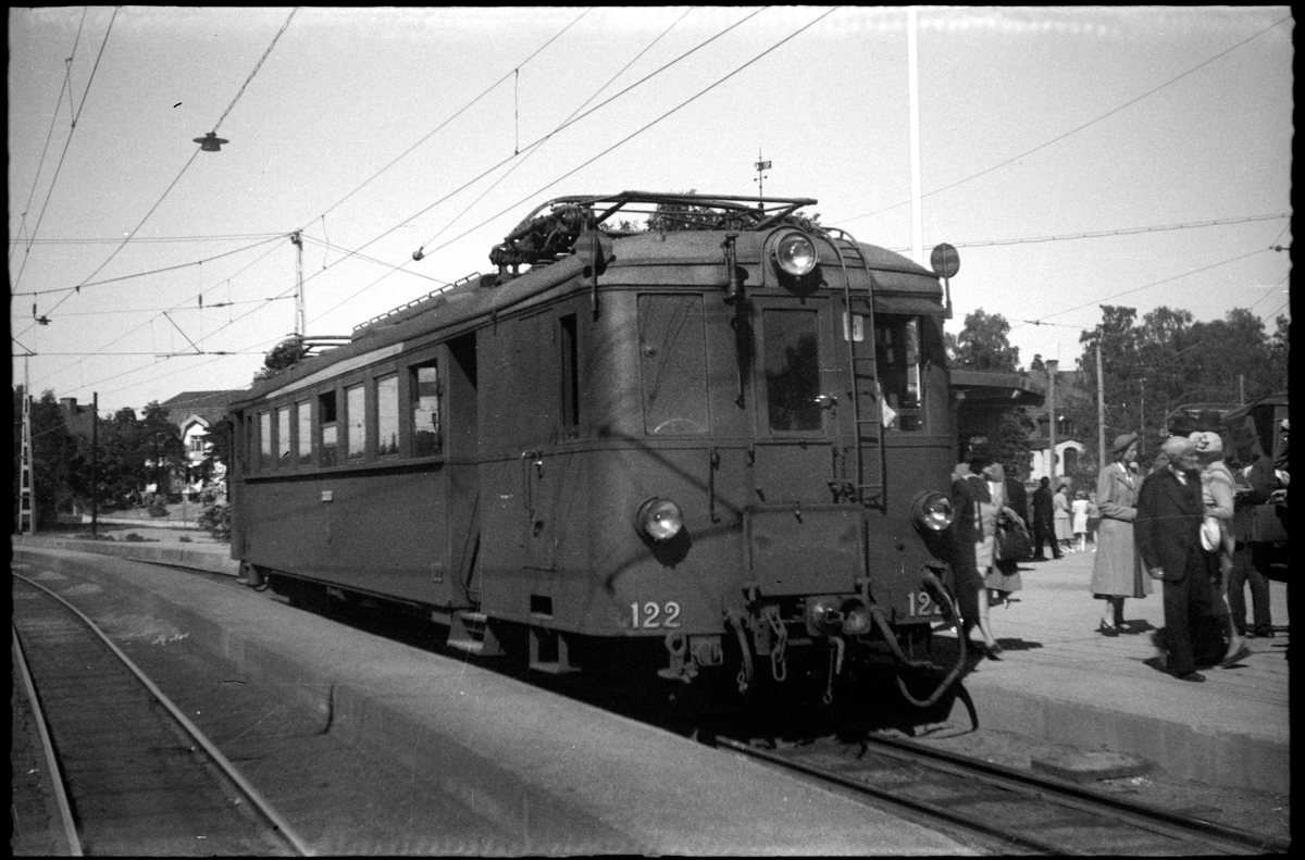 Motorvagn tillhörande Stockholm - Roslagens Järnvägar, SRJ X4p 122 på Djursholm Ösby station.