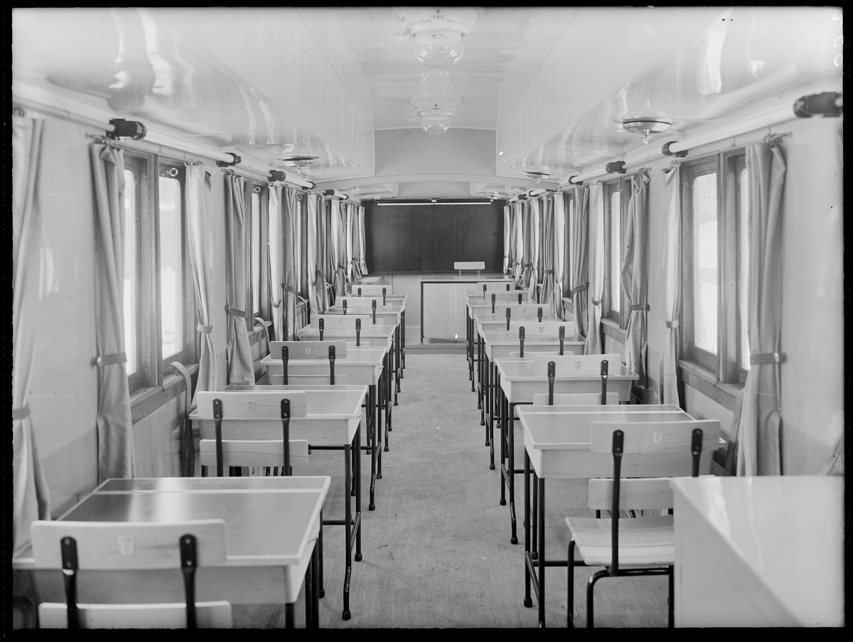 Stockholm - Roslagens Järnvägar, interiör av undervisningsvagn SRJ Bop 30.