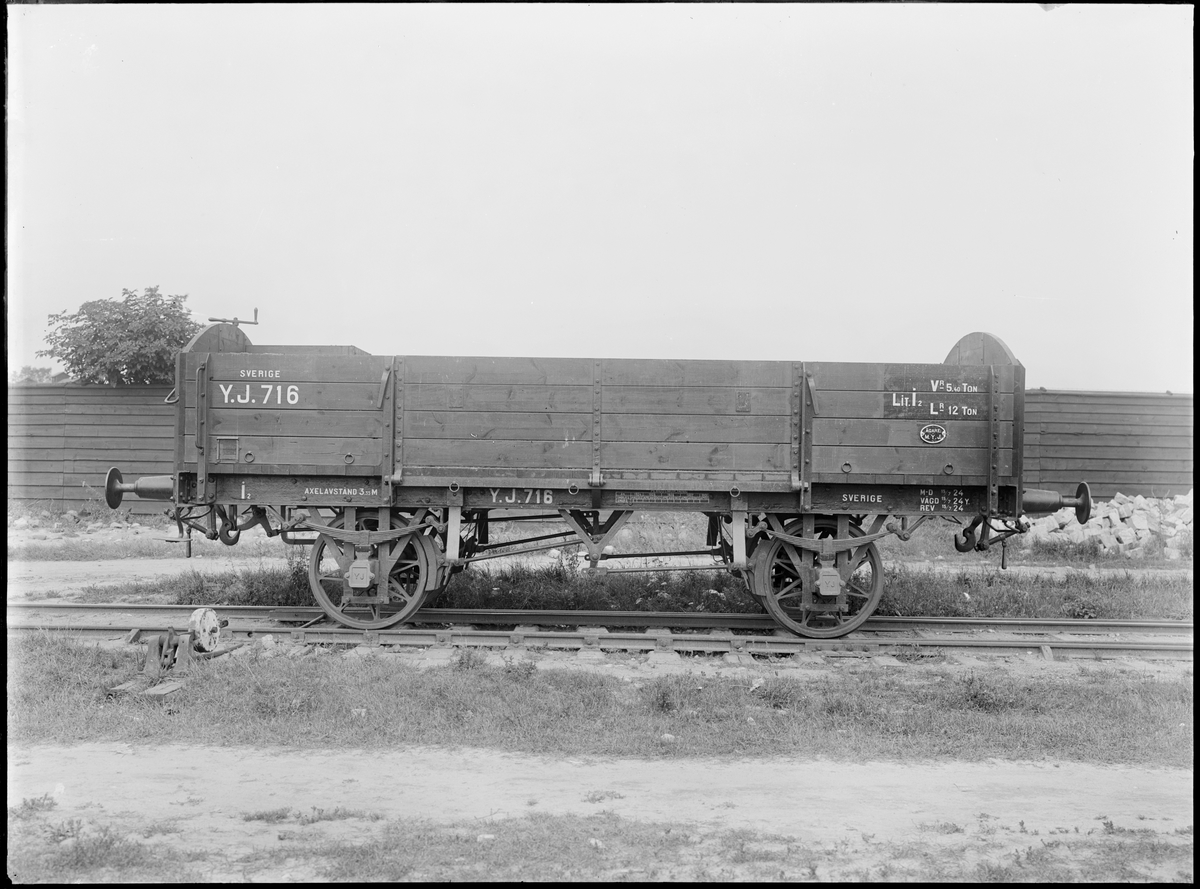 Öppen godsvagn använd av Ystads Järvnvägar, YJ I2 716, byggd av Södertälje verkstäder.