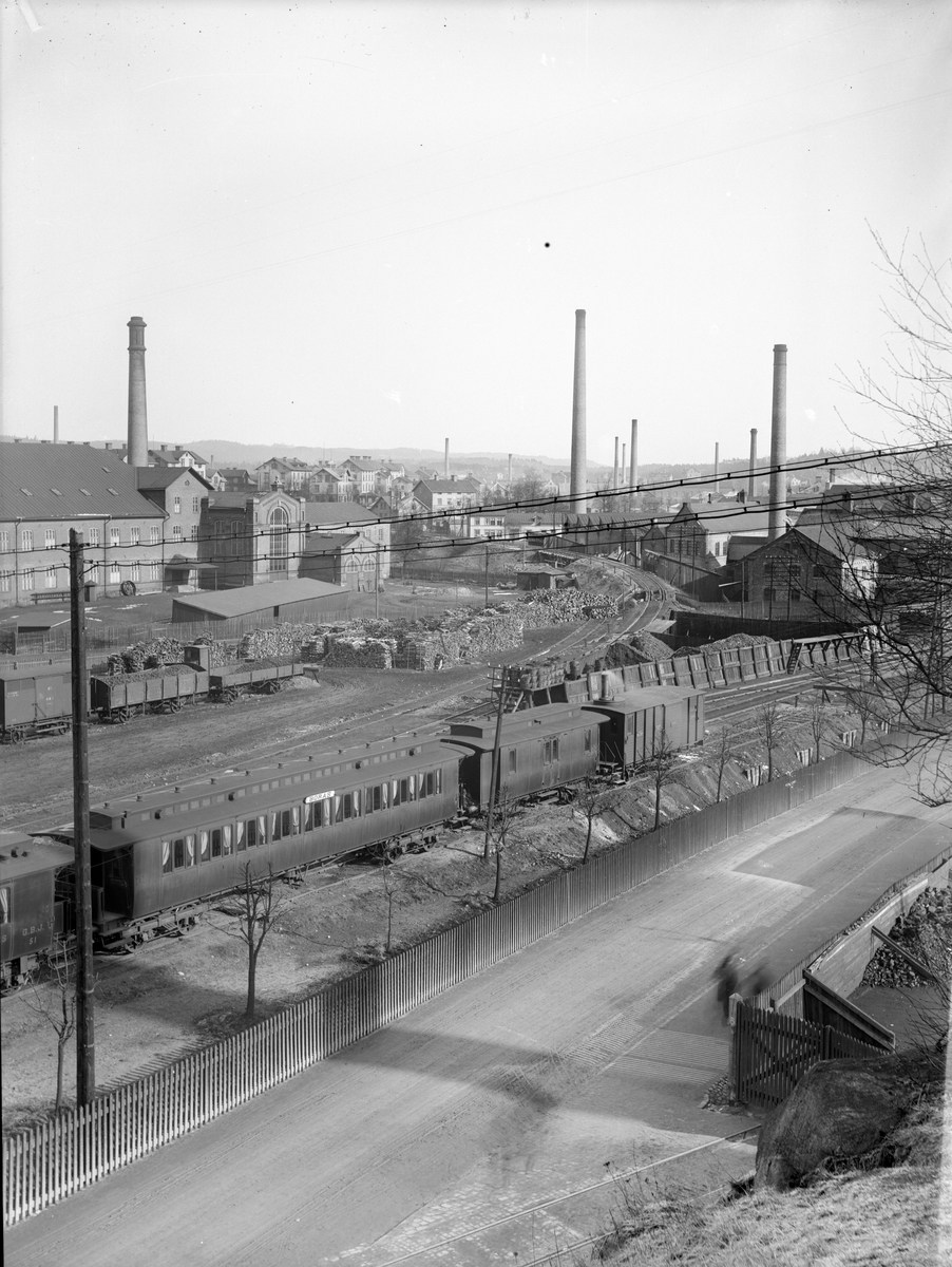 Borås nedre station. Göteborg–Borås Järnväg, GBJ Co 72, GBJ F 180, BAJ Få 227 ångfinka samt till vänster skymtas GBJ BCo 51.