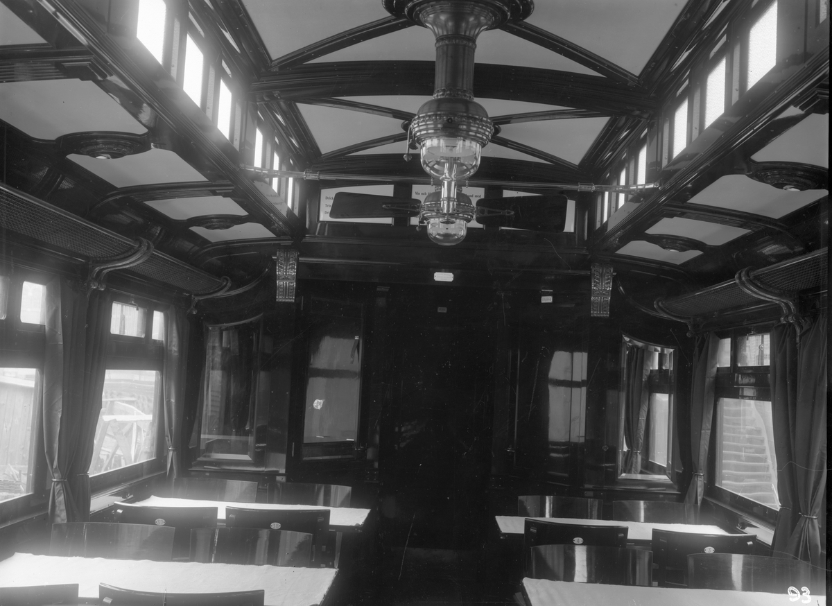 Statens Järnvägar, SJ ABo3 2465, interiör matsal, lanternin. Kockums.