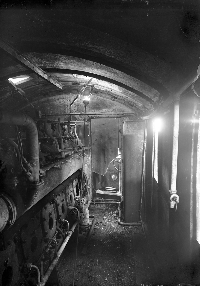 Stockholm - Nynäs Järnväg, SNJ ÄF 10, dieselelektriskt lok, motorrum efter brand